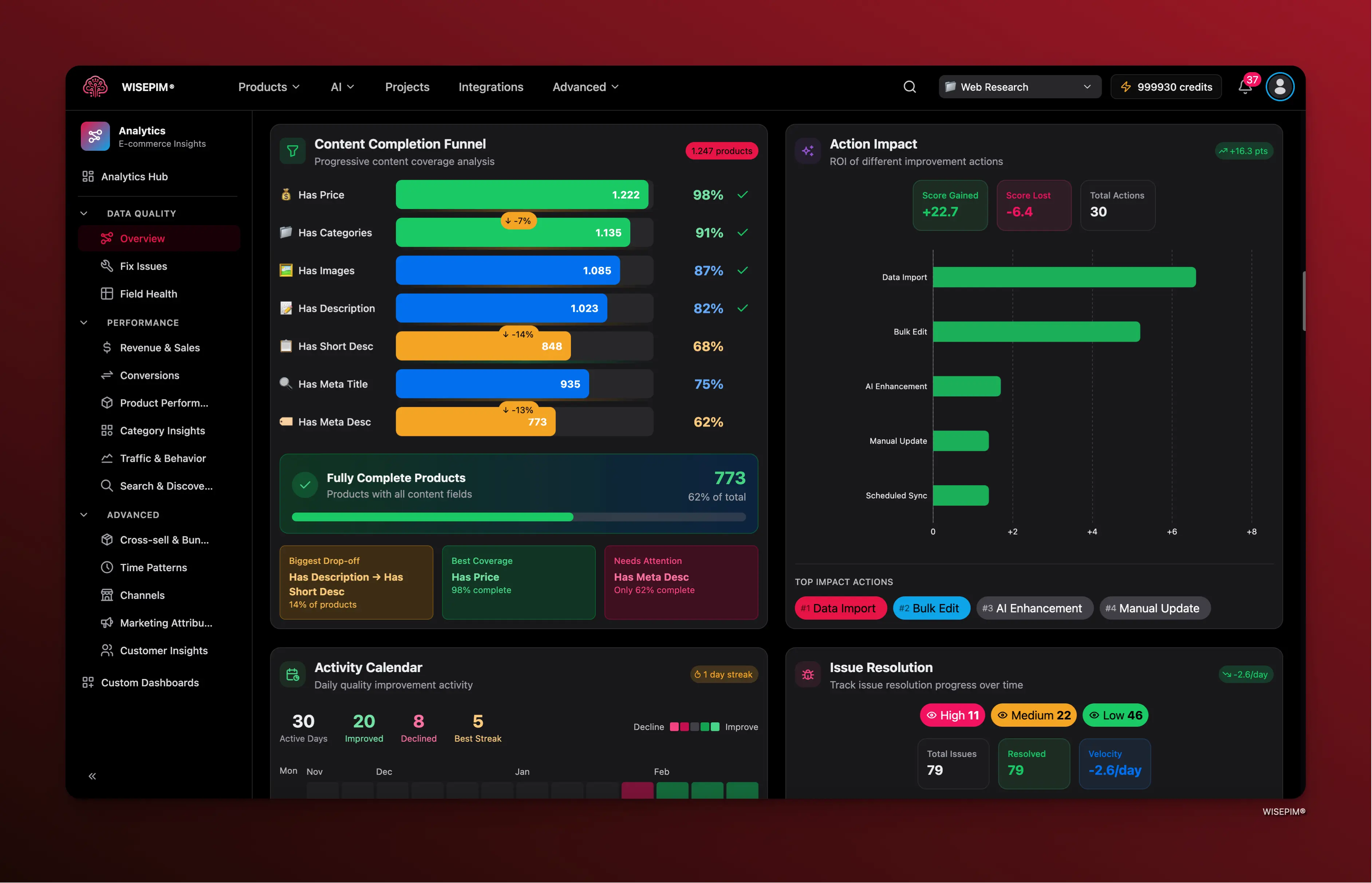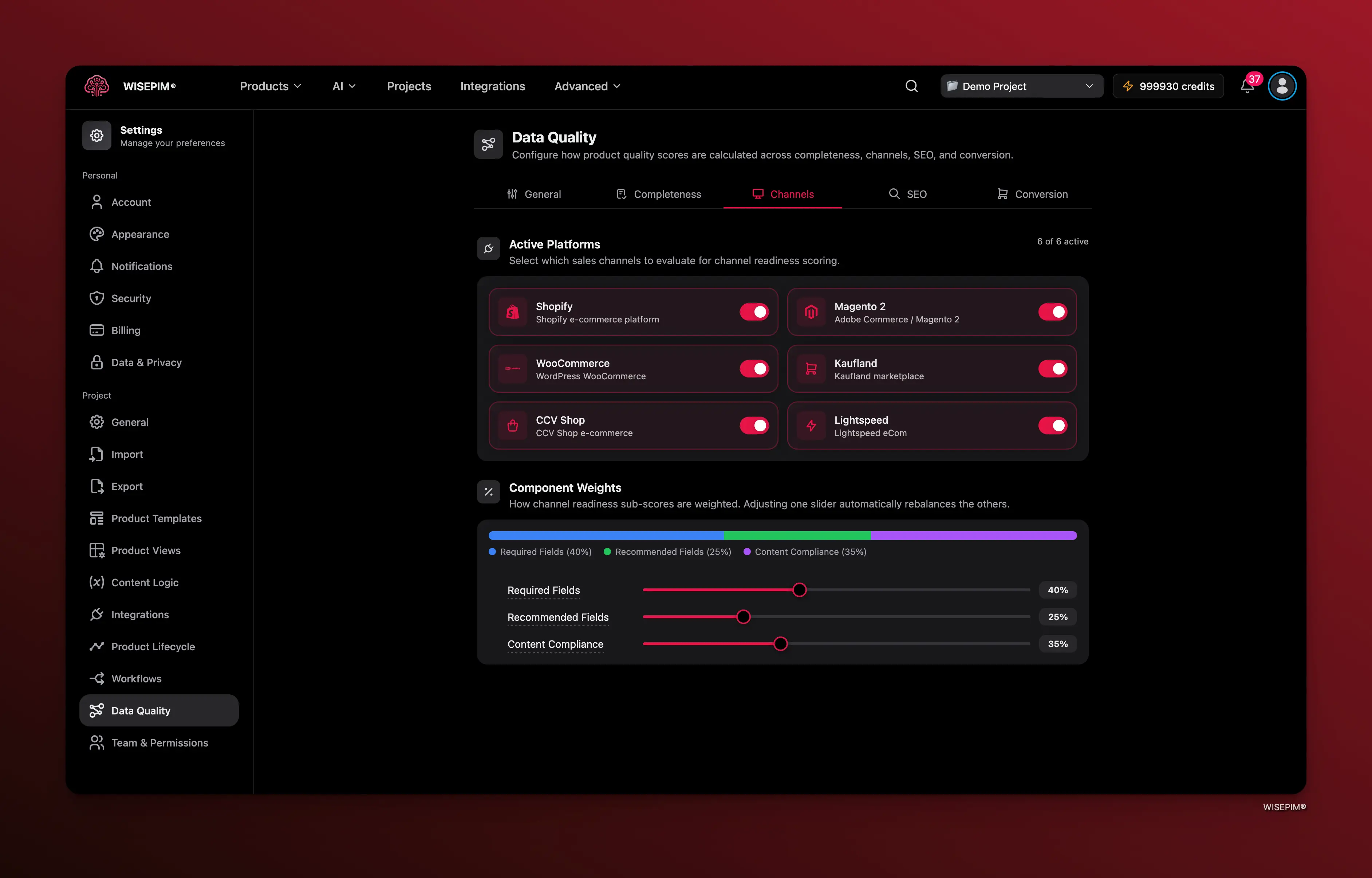 Legacy PIMs give you a completeness score of 80% and let you export anyway. WISEPIM actively blocks bad data from hitting Shopify, Amazon, or Kaufland.