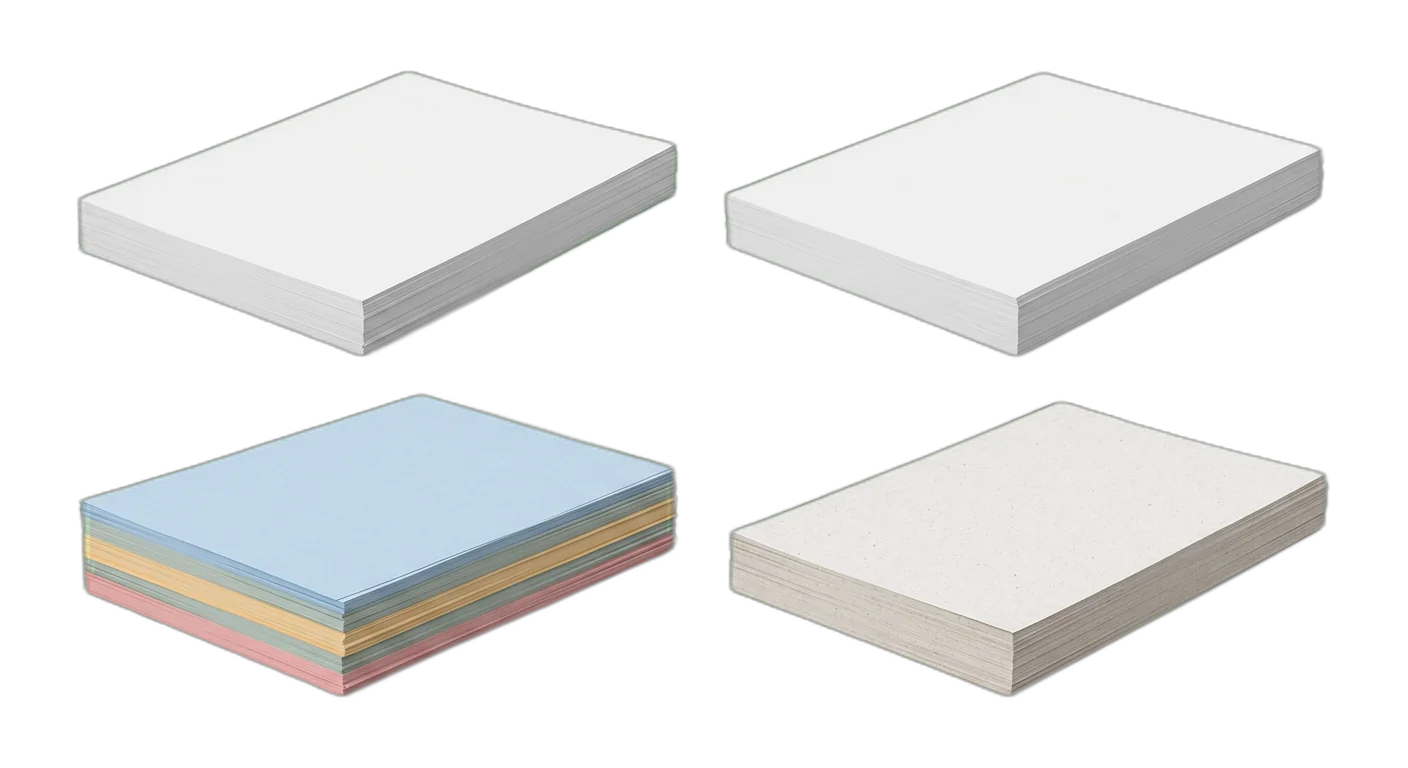 Not recording technical specifications for paper products (GSM weight, brightness, paper size)