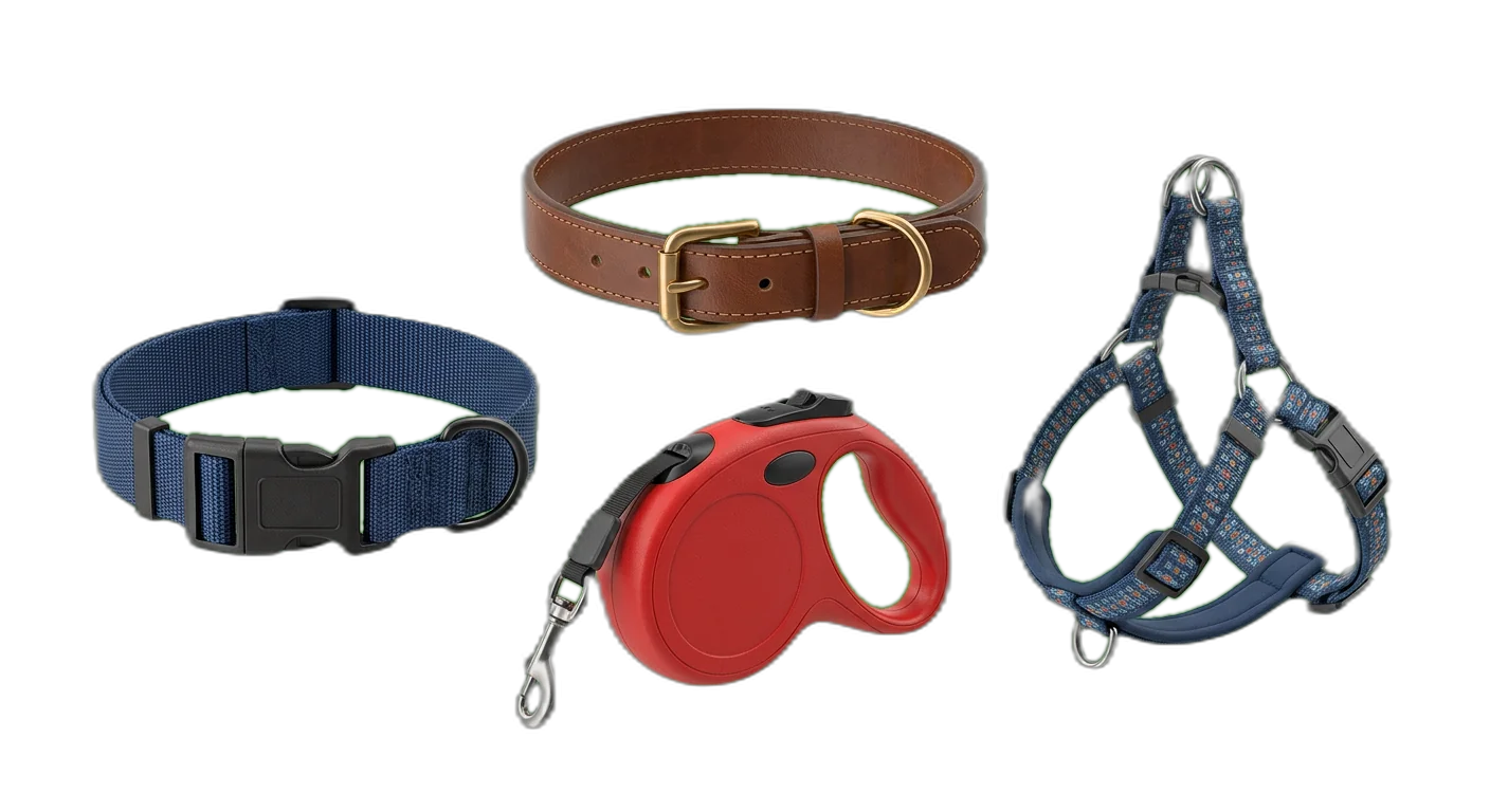 Collars and leashes are essential for every dog owner, creating a universal addressable market. The category has expanded beyond basic functionality into fashion and tech (GPS-enabled, LED collars). Premium leather and custom collars command margins of 70%+ while driving repeat purchases as dogs grow.