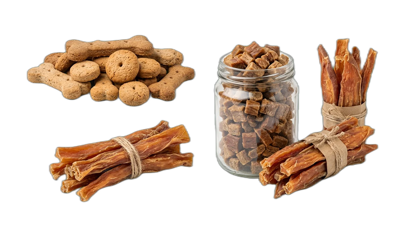 Dog treats are the fastest-growing segment in pet food, driven by premiumization and the humanization of pets. Natural, single-ingredient treats command margins of 65%+ and have strong impulse purchase behavior. Training treats provide an additional functional subsegment with repeat buyers.