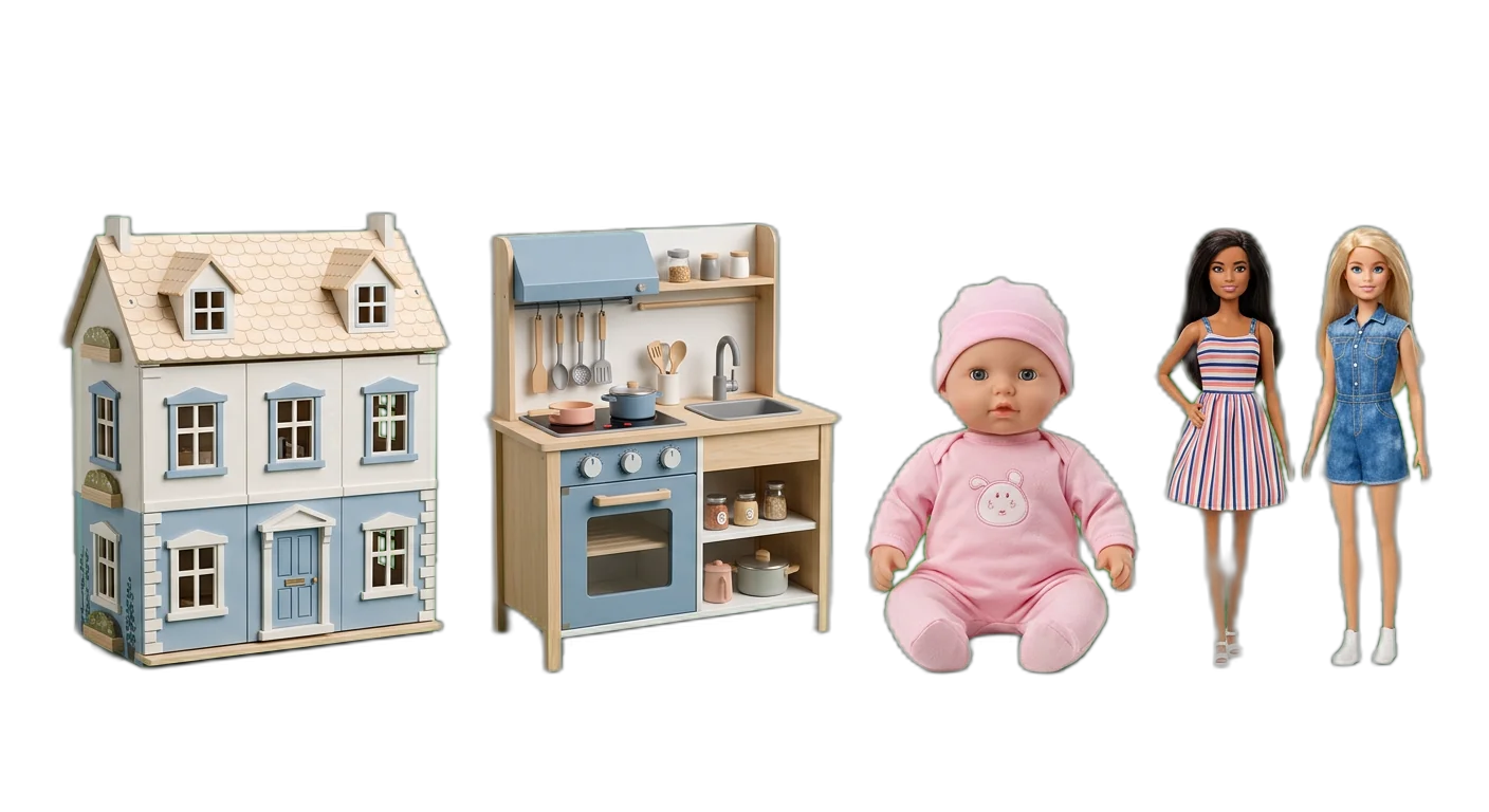 Dolls remain a foundational toy category with stable year-round demand and strong holiday gifting peaks. Barbie's cultural resurgence drove 25% growth in the fashion doll segment. Pretend play sets (kitchens, doctor kits) appeal to developmental-focused parents and have strong repeat purchasing.