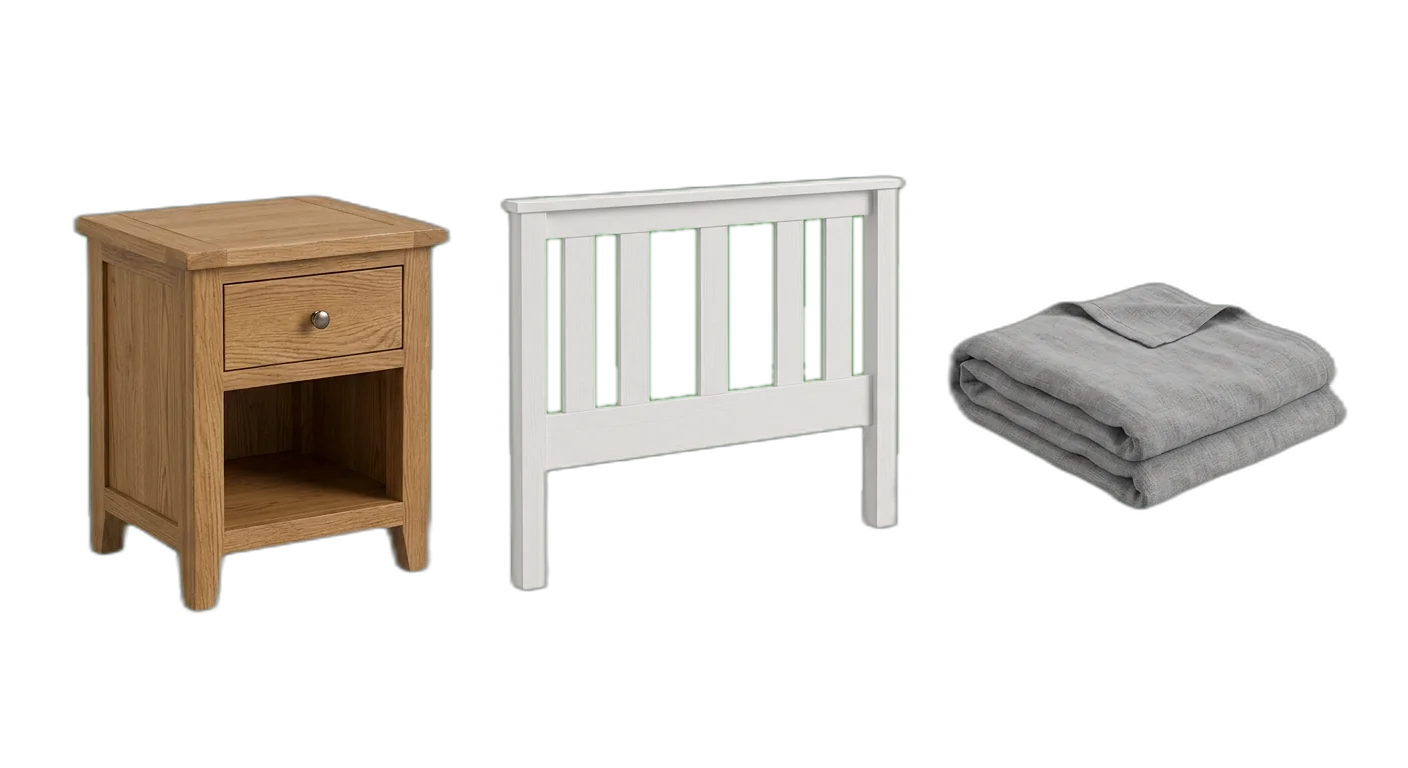 A leather armchair is Living Room > Seating > ArmchairsA bedside cabinet is Bedroom > Bedroom Storage > Nightstands - 2